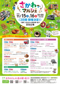 〈2日間開催決定!〉[10:00~15:00]佐川町内外から2日間で30店以上の、楽しい・美味しいお店が集結するマルシェを開催!もちろん、当道の駅PR隊長まきにゃんも登場予定!肌寒い時間帯をあるかもしれませんので、温かくしてお買い物やグルメをお楽しみください。