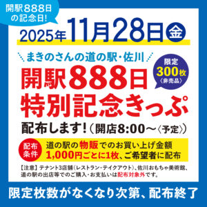※テナント3店舗(レストラン・テイクアウト)、佐川おもちゃ美術館、道の駅の出店等でのご購入・お支払いは配布対象外です。