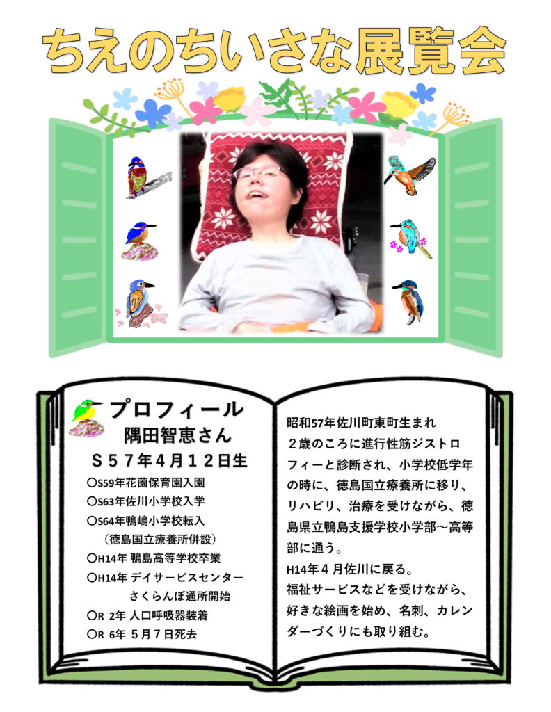 難病を抱えながら佐川町でイラストを描き続けた故・隅田智恵さんの作品を展示。