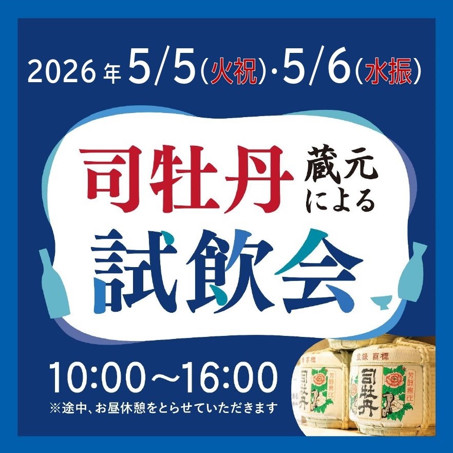 日ごろより、まきのさんの道の駅・佐川をご利用いただきありがとうございます。今年のゴールデンウィークは、佐川町が誇る歴史深い老舗「司牡丹酒造」の蔵元による地酒試飲会を開催します!■開催日:2026年5月5日(火祝)・6日(水振)■時間(予定):10:00〜16:00(途中、お昼休憩をとらせていただきます)おすすめの地酒の数々をお試しいただける貴重な機会となります。高知旅のお土産選びにもいかがでしょうか。ぜひお楽しみにお越しくださいませ!