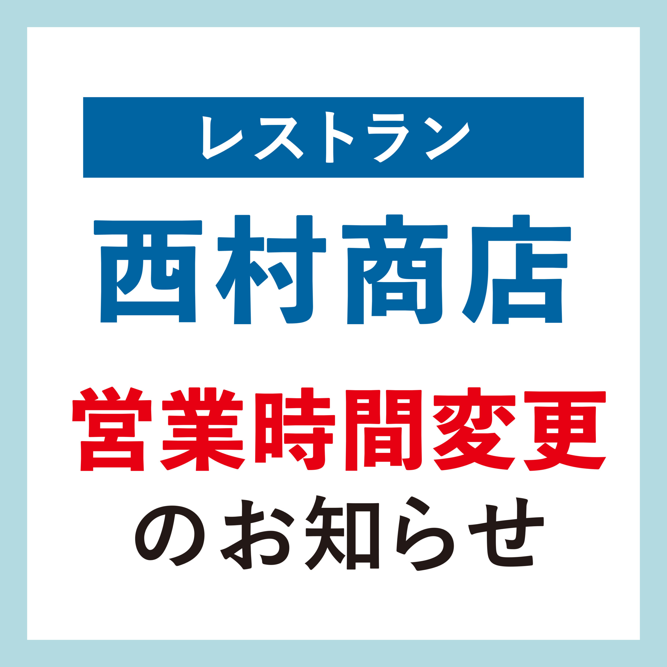 日ごろより、まきのさんの道の駅・佐川をご利用いただきありがとうございます。西村商店(レストラン)は本日3月13日(金)、諸般の事情により営業時間が変更となります。
