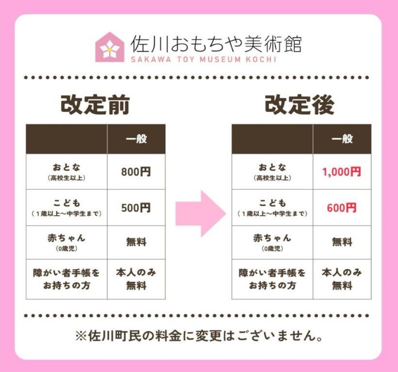 詳しくは、佐川おもちゃ美術館HP(入館料改定のお知らせ)をご確認ください。